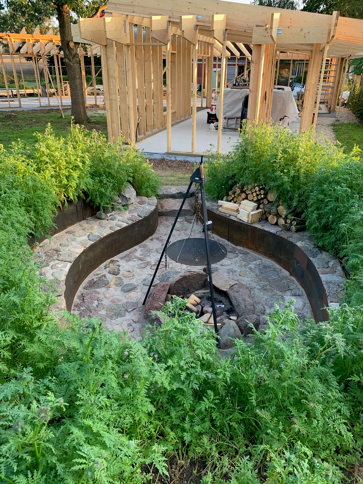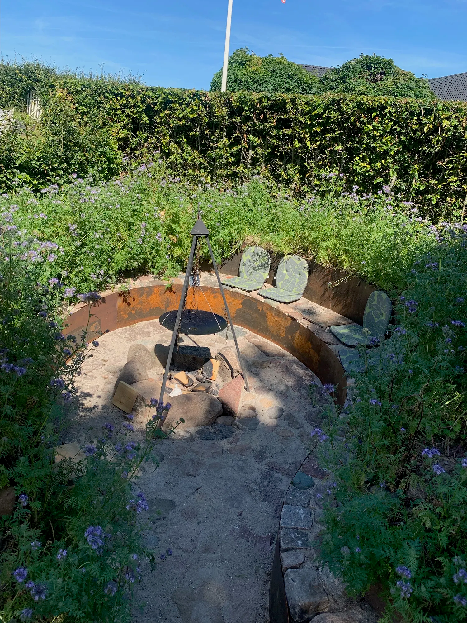 Og nu er der ved at være vokset til med honningurt omkring bålpladsen. Det er virkelig blevet vildt hyggeligt.