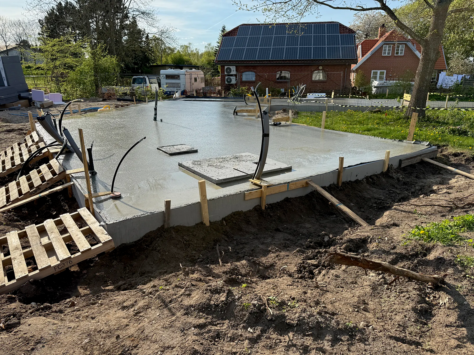Støbning af sokkel og terrændæk. Nu skal det vise sig om det hele holder. Og det lykkedes til sidst.