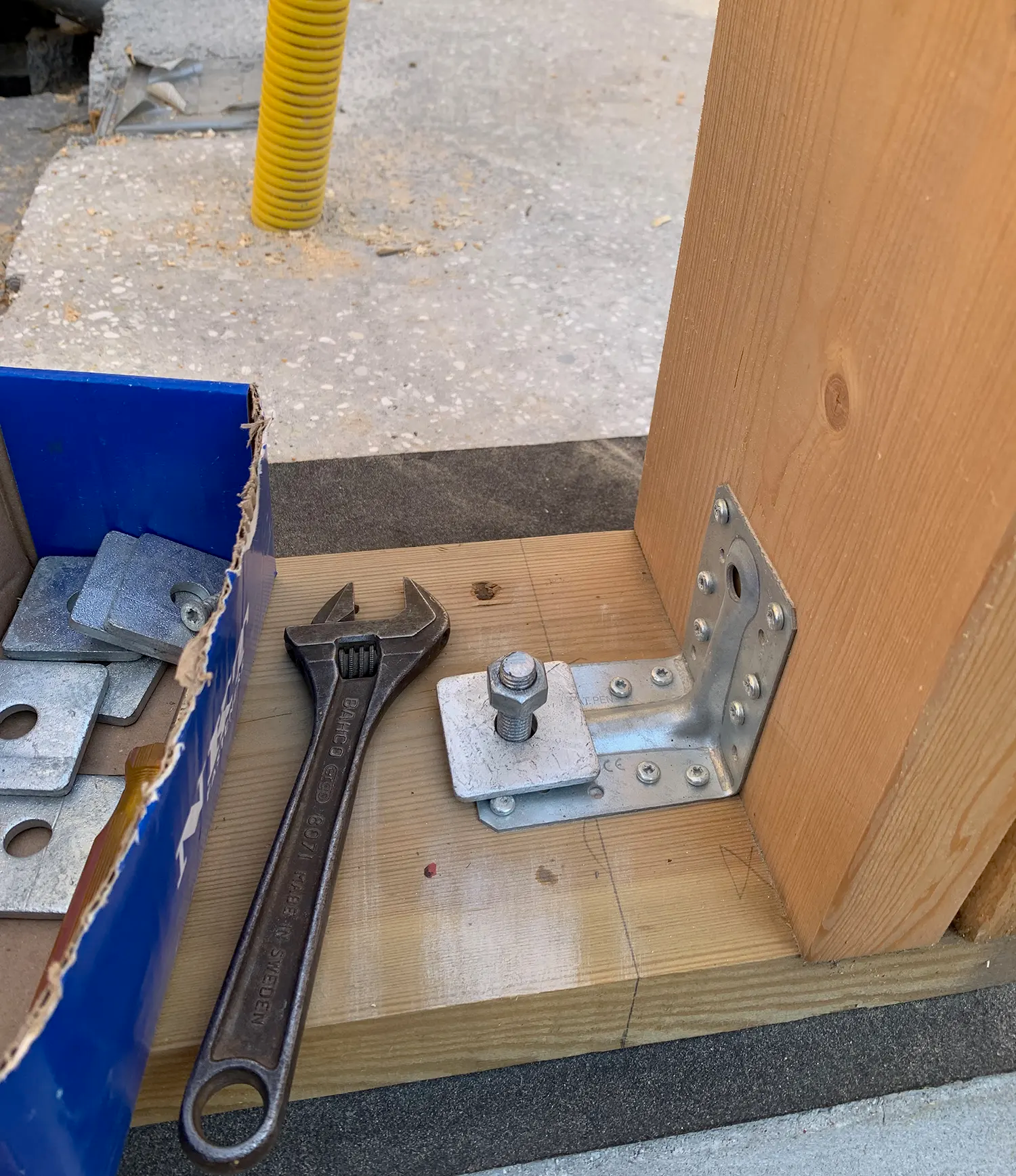 Spær måles op, skæres og lægges op. Nu begynder det for alvor, at ligne et hus.