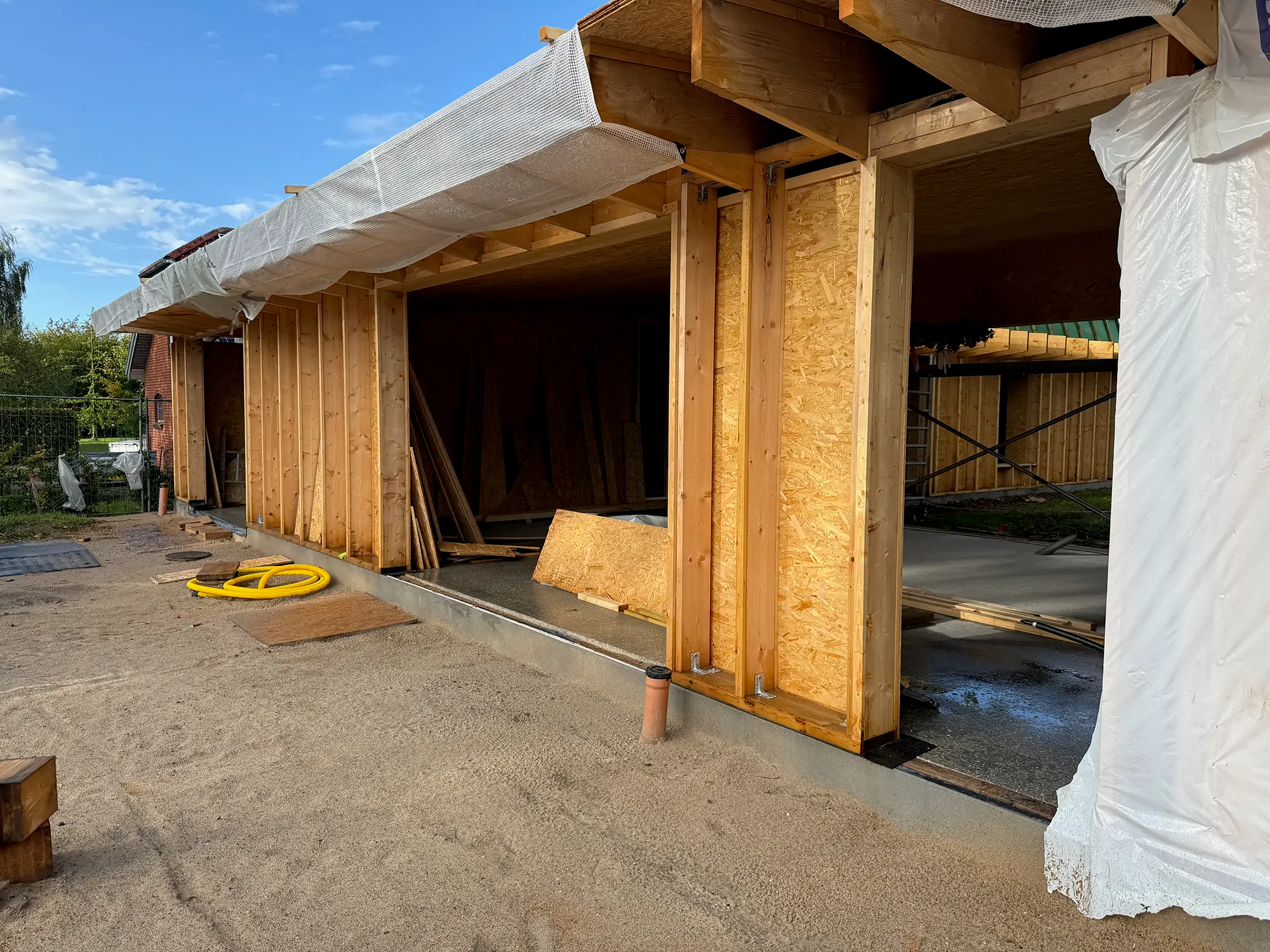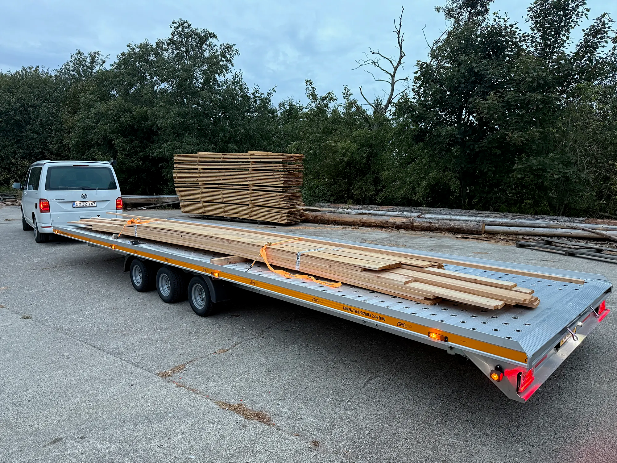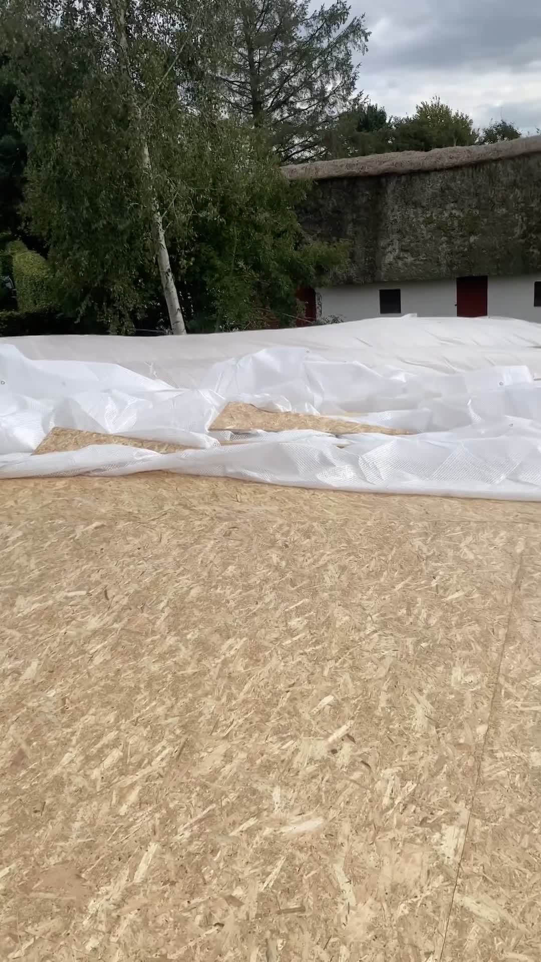 Taget udgøres af 18 mm OSB-plader og med stern af thuja sternbrædder fra Hemmerslev Træ som er blevet hentet hjem på måske danmarks længste trailer 10,5 m total.