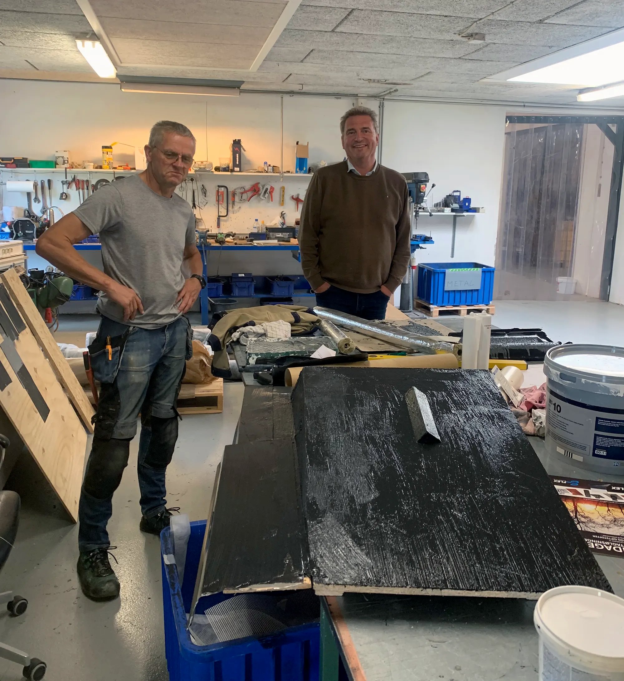 Men først skulle vi have styr på tagdækningen og det blev ElaProff som ses på maleprøve på nedenstående i værkstedet hos EasyFlex i Roslev.